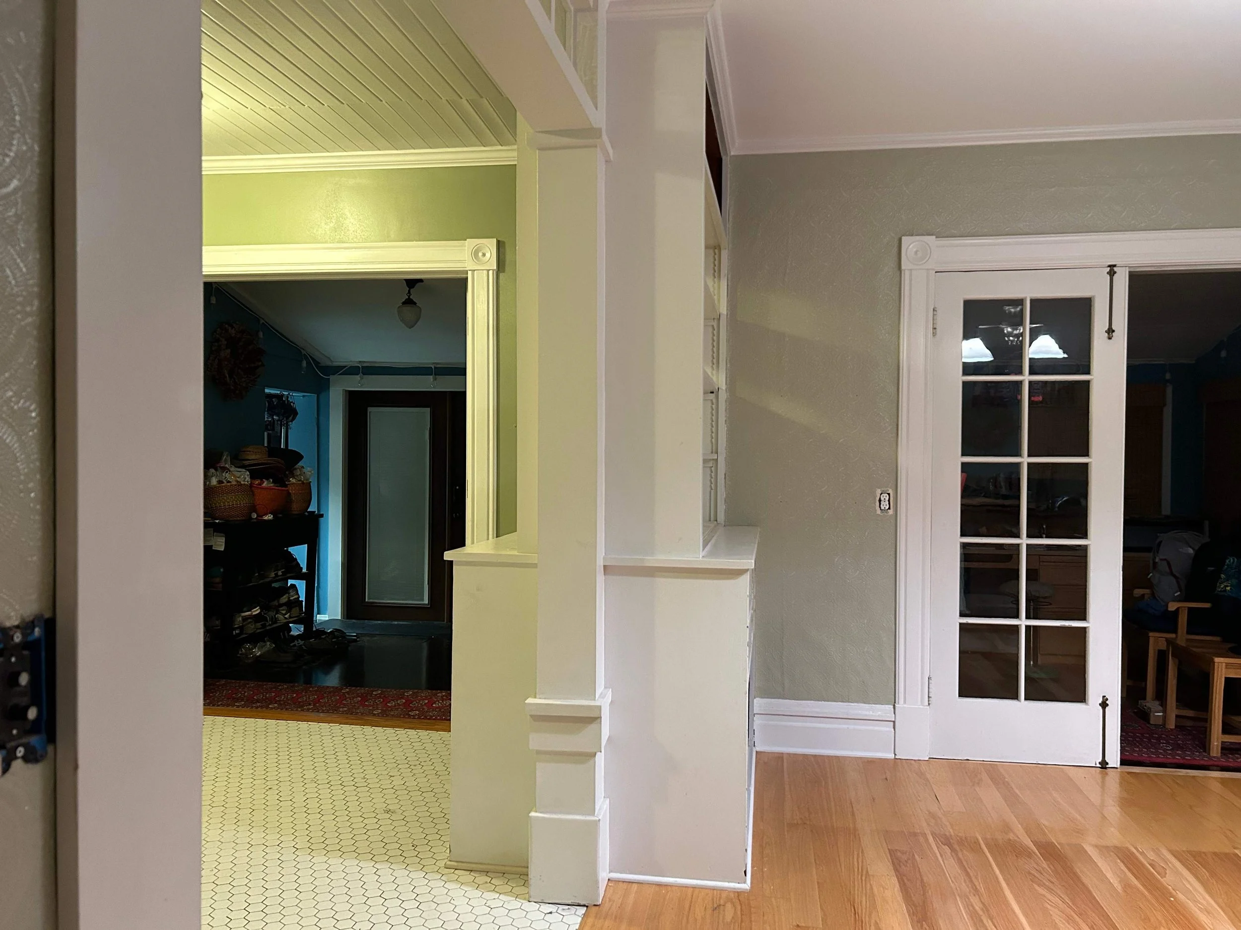 We removed awkward built-ins and a faux beam that made the room feel cramped. After taking the space down to the wallboard, we reinforced and corrected the framing to create a solid foundation.