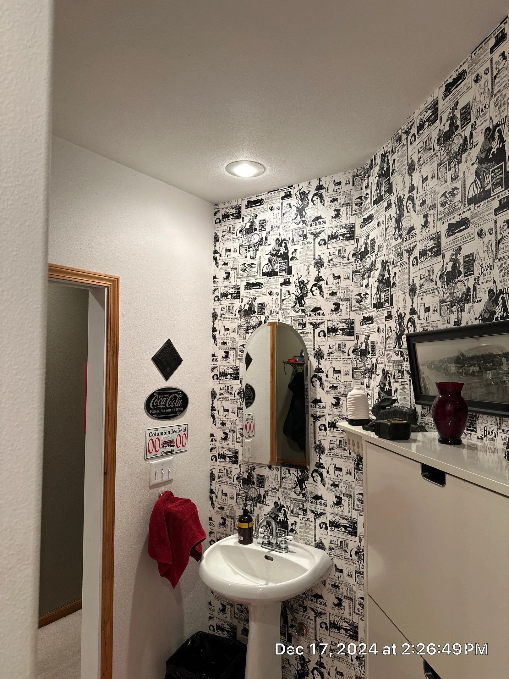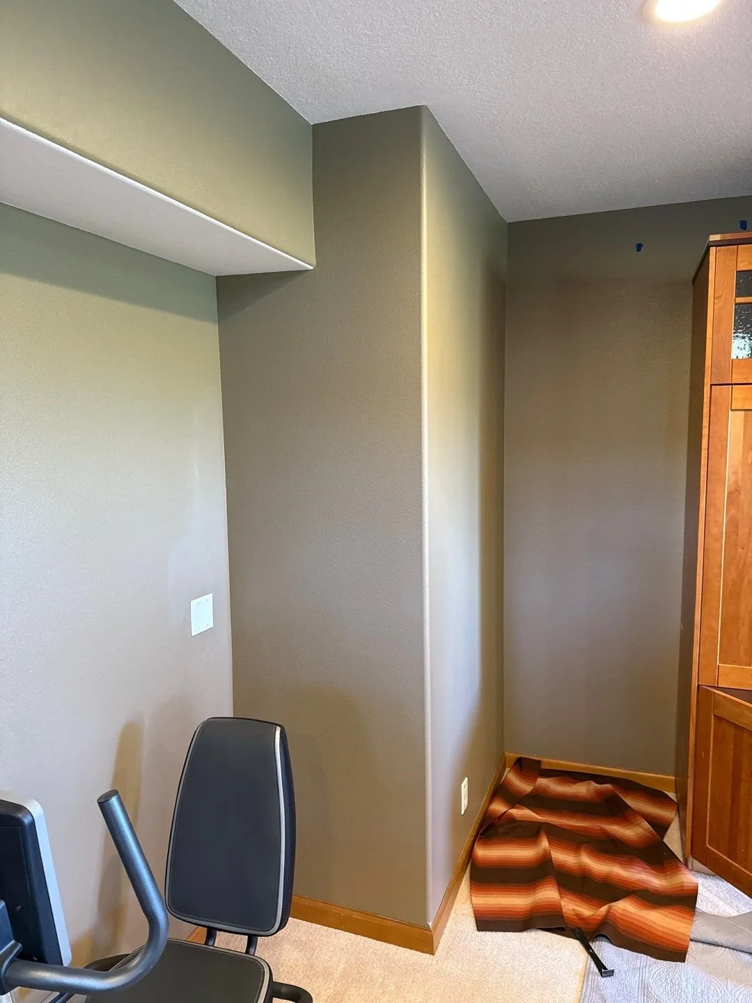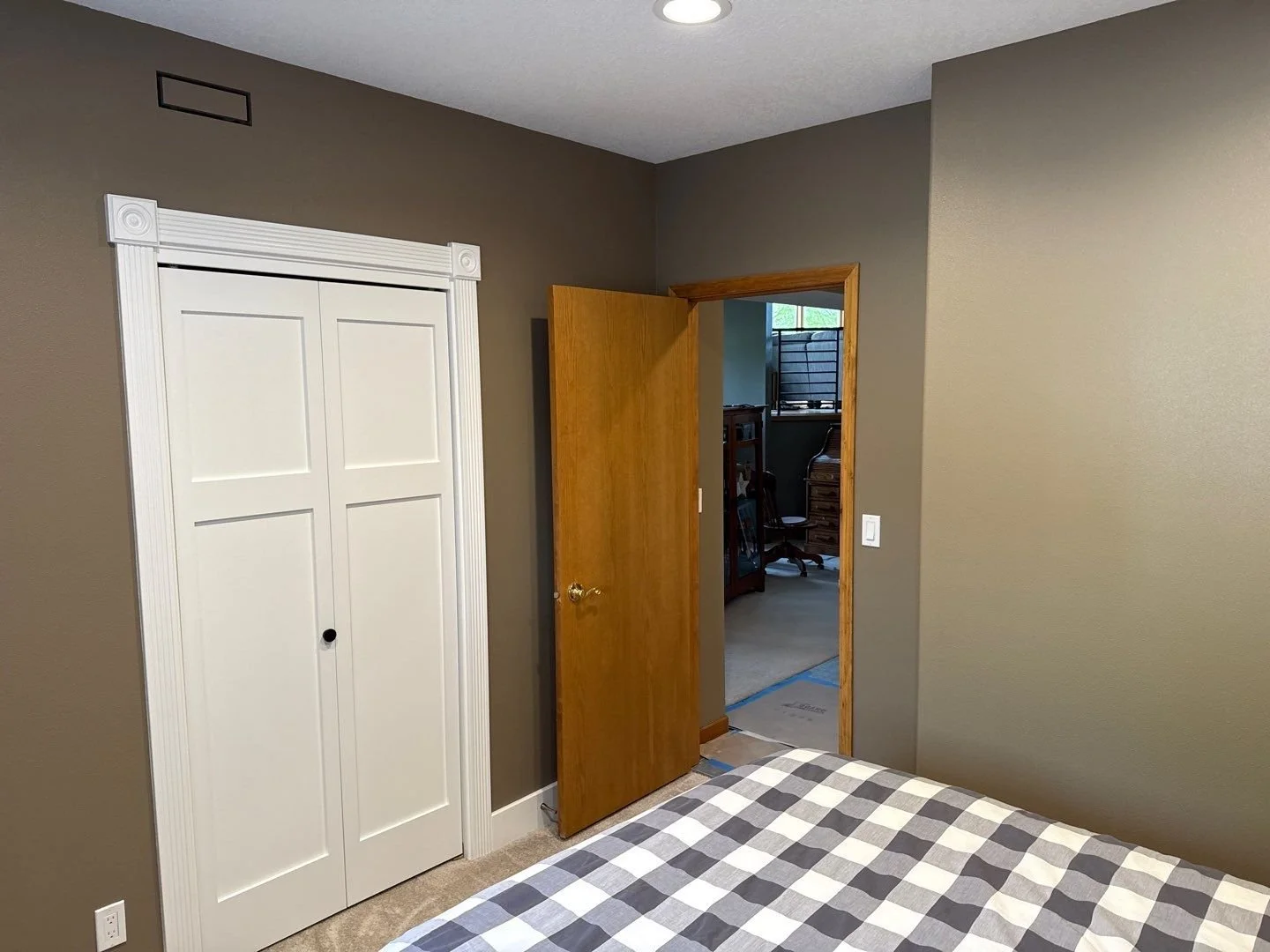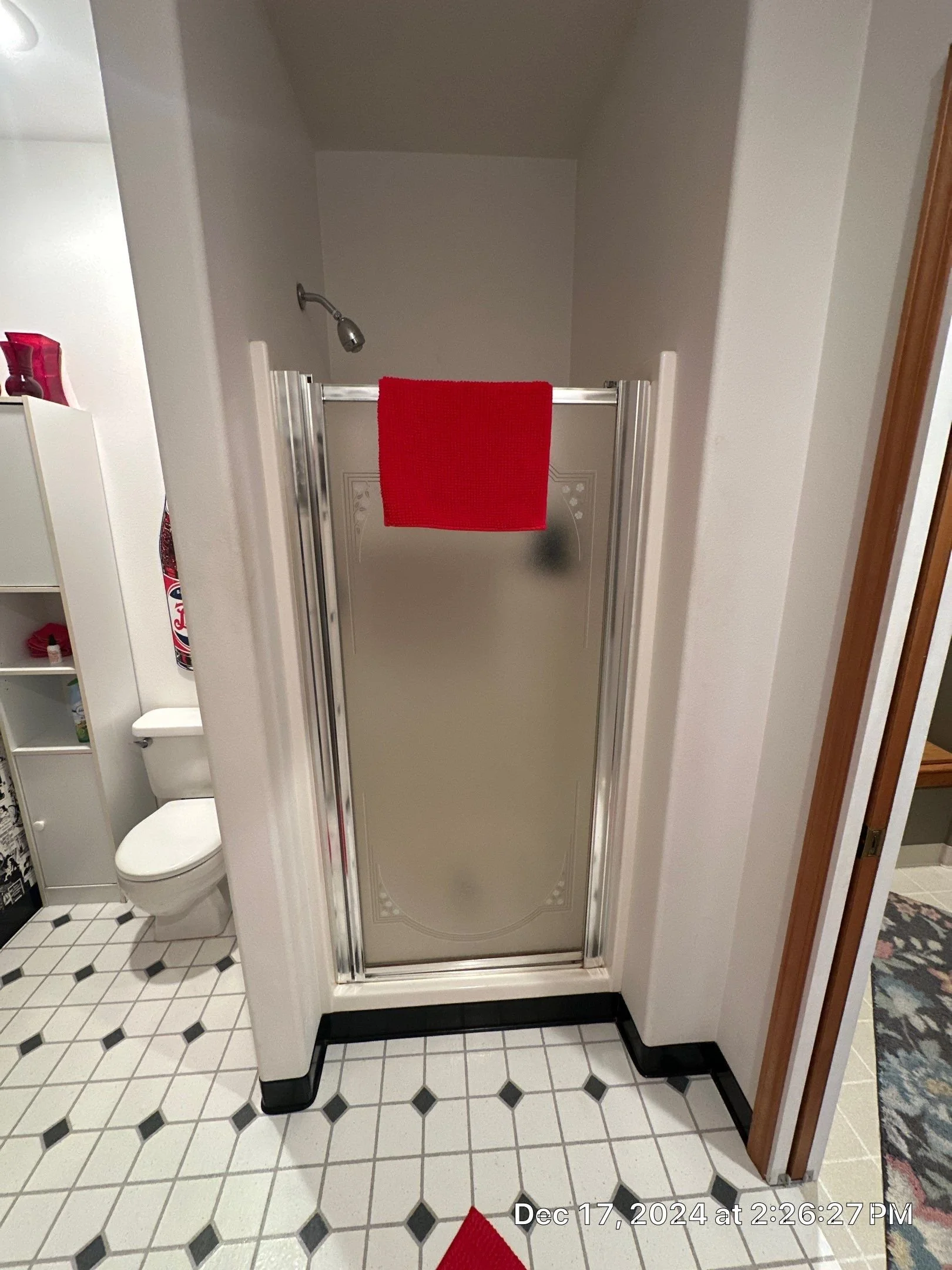 Built in 1990, this well-constructed home had strong bones but a cramped basement entry and an outdated bathroom. The narrow hallway from the garage created a bottleneck, and the existing shower made the bathroom feel dark and tight.